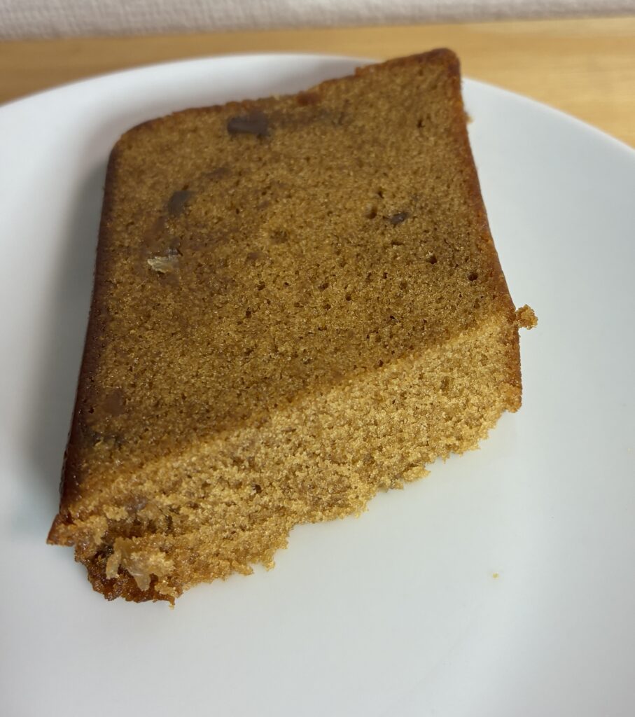 しっとりとしたケーキ生地に、クラッシュマロンが練り込まれていて、